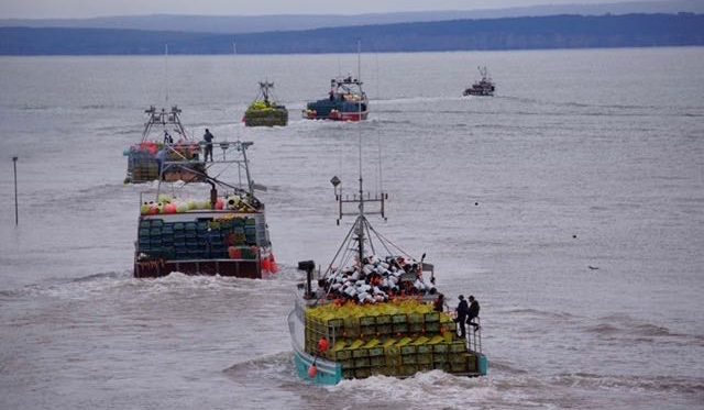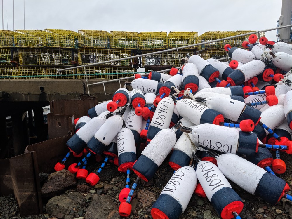 The excitement mounts as the traps are piled high on the boats and crew members climb aboard.